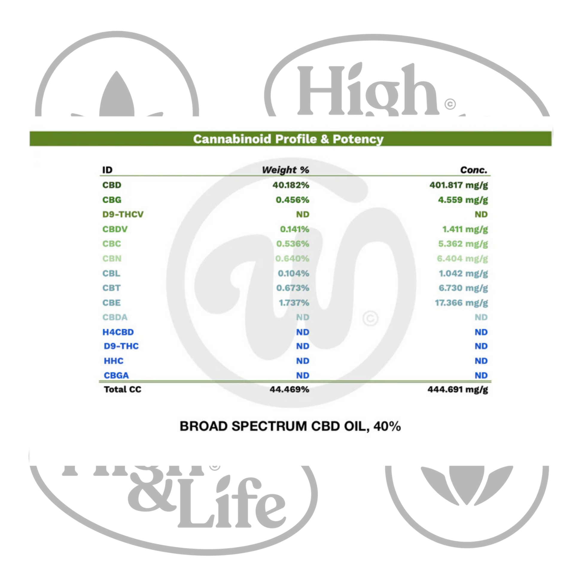 Laajan kirjon koostumus: Laajan kirjon (broad spectrum) tarkoittaa, että öljy sisältää useita hampun luontaisia yhdisteitä, mutta ei lainkaan THC:tä. Mukana ovat muun muassa CBD, CBG, CBDV, CBC, CBN, CBL, CBT ja CBE. Monipuolinen kannabinoidiprofiili antaa tuotteelle täyteläisen ja tasapainoisen koostumuksen.